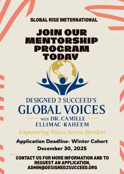 The Global Rise International Mentorship Program is a six weeks program consisting of group sessions and one-on-one meetings, designed for individuals working in helping professions in their countries—particularly in underserved or remote areas—such as counseling, social work, and related fields. This supportive, cross-cultural initiative fosters professional growth, resilience, and global collaboration. Mentees in the program include licensed mental health professionals and scholars. Interested in joining our February Winter Cohort? Contact us for more information and to request an application, admin@designed2succeed.org