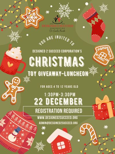 Designed 2 Succeed Corporation First Annual Christmas Luncheon and Toy Giveaway Party December 22, 2025 !